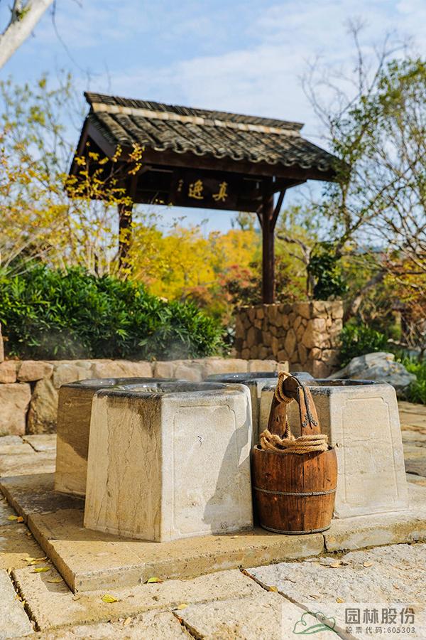問茶:展區(qū)以龍井山園為主景進(jìn)行打造,種植2000余株龍井“43號”。茅草雙亭立于山頂,為欣賞整個展園的佳處。周邊山色青秀、泉水淙淙,體現(xiàn)出西湖人問山、問水、問茶的游賞情致。