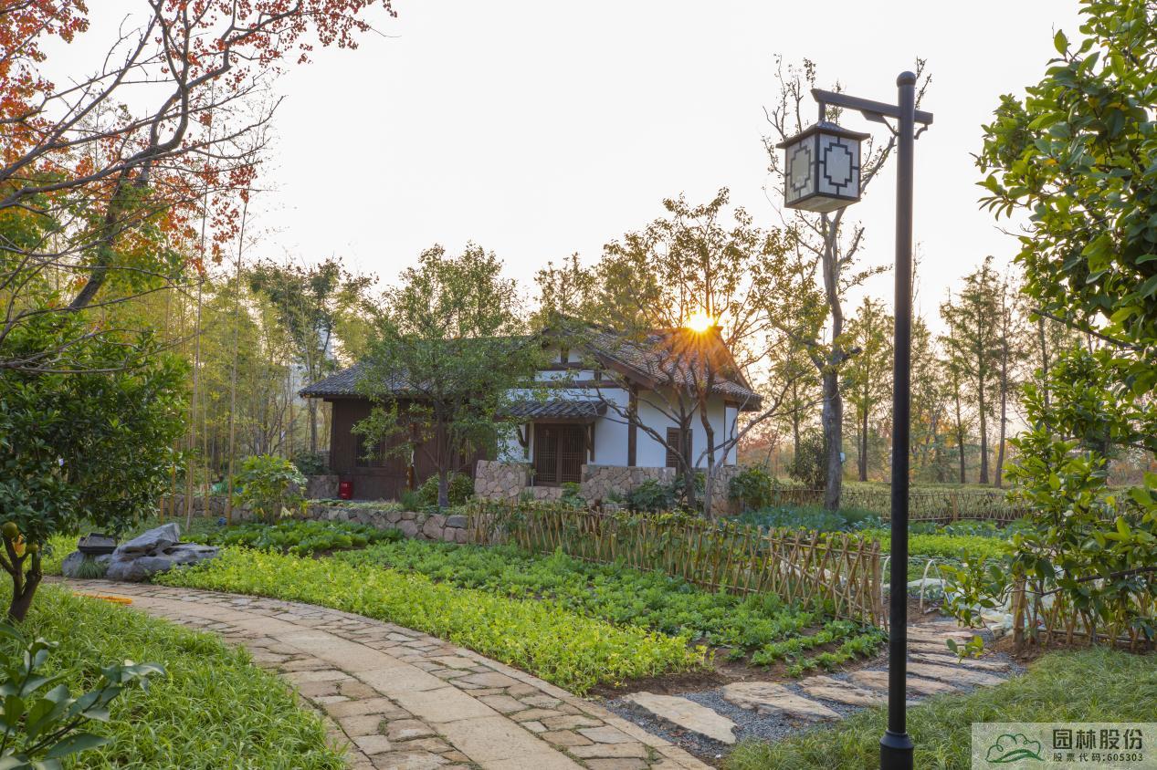 整個(gè)園區(qū)主要種植黃山欒樹、楓香、桂花等植物,植物景觀分為六個(gè)展示區(qū)。其中,翠竹園以散生竹為主,營造翠竹掩映的效果;庭院植物以羽毛楓、桂花、紫薇等為主,在湖邊駁岸、庭院等小空間以花境組團(tuán)形式,營造精致雅靜的植物景觀;花園植物區(qū)以康養(yǎng)植物為主,營造清新而有益的花園空間,放松身心;茶園區(qū)以茶園的形式,展示西湖的茶園慢生活;彩葉山林植物模擬西湖常綠落葉闊葉混交林植物群落,以杭州鄉(xiāng)土植物為主,打造自然優(yōu)美、秋色迷人的風(fēng)景林;現(xiàn)代田園區(qū)以果蔬花園、田埂農(nóng)作、設(shè)施農(nóng)藝等形式展示現(xiàn)代詩意棲居的田園生活。