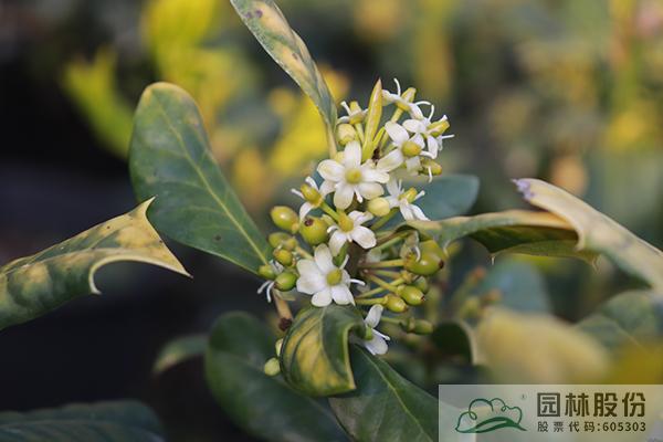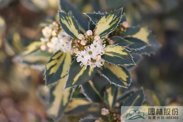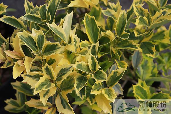 其中,彩葉冬青更是其中的佼佼者。除了果實(shí)可供觀賞外,它們還擁有黃色葉、藍(lán)綠色葉和銀邊葉等彩色葉片。葉形變異也是相當(dāng)豐富,具四角狀,橢圓形,倒卵形等多種形狀;有些品種具有刺狀葉片,而有些則是光滑的葉片;有些品種葉緣還具有波浪狀的起伏。四季景觀分明,在春季,它們的莖腋間會(huì)簇生出一朵朵清新可愛的小花;而在當(dāng)年生的枝條上,則會(huì)抽出亮麗的嫩葉。到了秋季,隨著氣溫的驟降,葉色會(huì)變得更加地明艷;冬季的時(shí)候,在雌性的植株枝條上,則會(huì)掛滿累累的果實(shí)。這些不同的形態(tài)和色彩變化,使得彩葉冬青在不同的時(shí)間和空間中呈現(xiàn)出不同的姿態(tài)、色彩與意境,從而提升了冬青品種的觀賞價(jià)值,成為園林景觀中重要的觀葉植物。